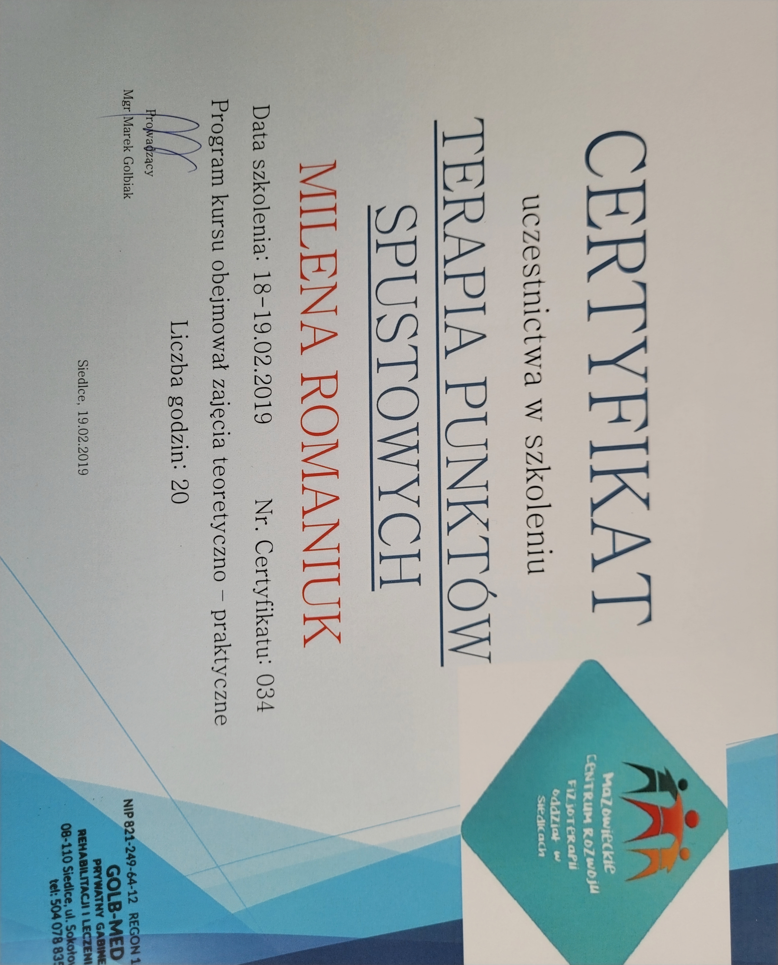 Każdy przypadek wymaga indywidualnego podejścia. Analizując wnikliwie historię dolegliwości oraz obecny styl życia możemy znacząco poprawić komfort pacjenta, dlatego zawsze zaczynam od znalezienia przyczyny problemu. Ważnym elementem jest edukacja pacjenta, zachęcam pacjentów do zmiany nawyków oraz poszerzania świadomości.