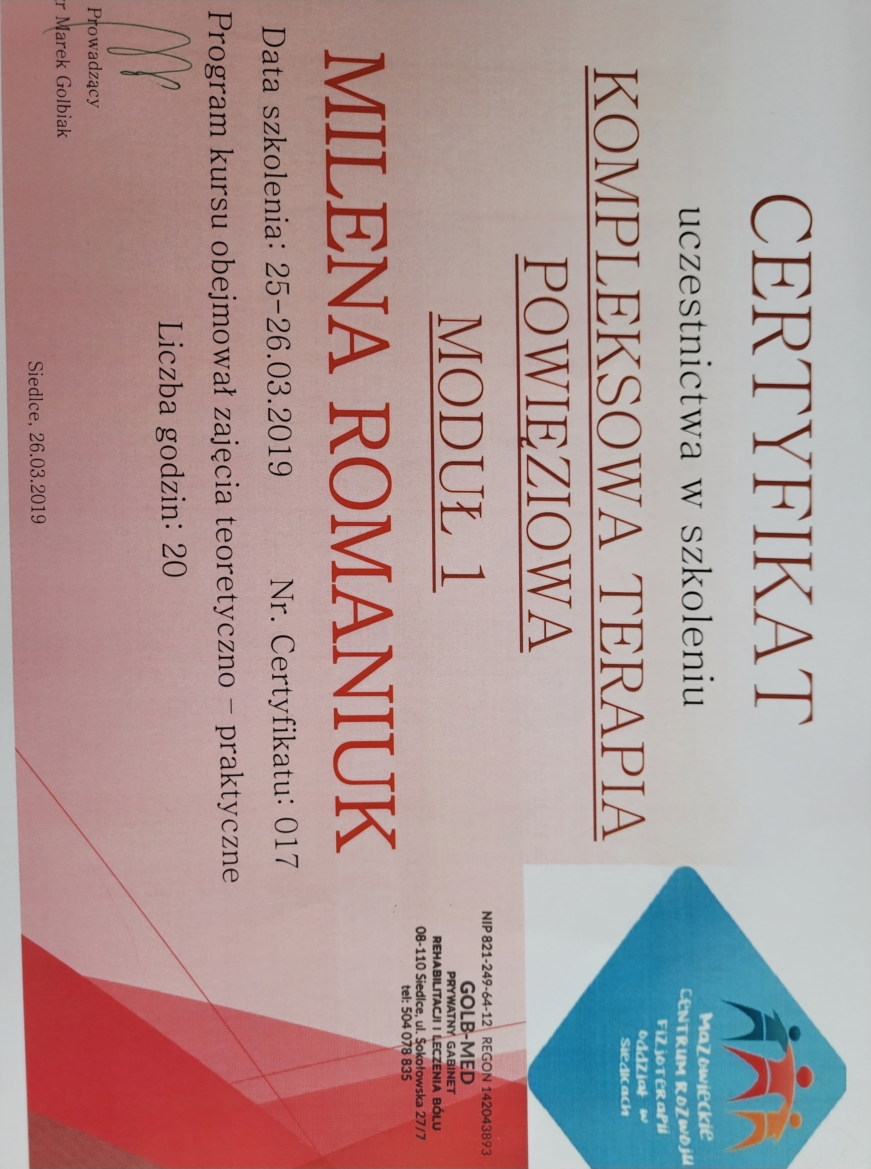 mgr Iwona Malewicz, specjalista w zakresie rehabilitacji neurologicznej i manulanej. Magister z zakresu fizjoterapii. Od 12 lat czynnie pomaga Państwu w zakresie rehabilitacji i fizjoterapii.